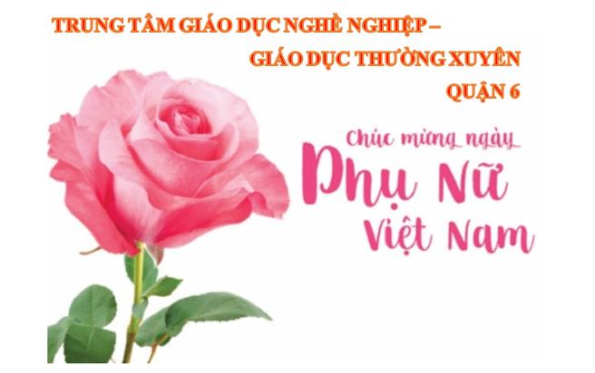 Trung tâm GDNN-GDTX Quận 6 xin gửi lời chúc mừng tốt đẹp nhất đến toàn thể nữ cán bộ, giáo viên, nhân viên nhân ngày 20/10. Chúc các cô giáo, chị em trong đơn vị luôn là những bông hoa tươi thắm, góp phần làm đẹp hơn cho ngôi trường và cuộc sống 🌹