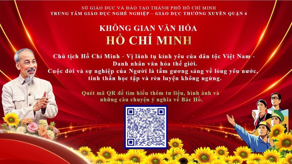 Không gian văn hóa Hồ Chí Minh tại Trung tâm GDNN–GDTX Quận 6 được xây dựng nhằm lan tỏa những giá trị cao đẹp về tư tưởng, đạo đức, phong cách của Chủ tịch Hồ Chí Minh; góp phần giáo dục lý tưởng sống, nâng cao nhận thức và trách nhiệm của cán bộ, giáo viên và học viên trong học tập, rèn luyện và công tác.